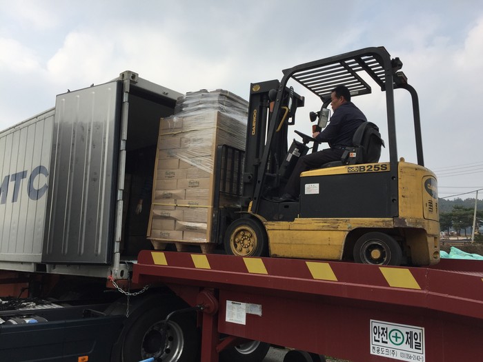 | ▲ 세종시에서 생산한 햅쌀을 홍콩으로 수출하기 위해 관계자가 컨테이너에 적재하고 있다.<사진제공=세종시청> |