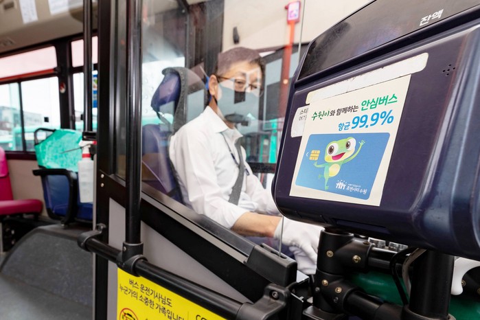수원시는 이달 초 수원여객운수가 운행하는 모든 버스의 교통카드 단말기에 항균 필름 1,500여 장(1대당 3장)을 붙였다.