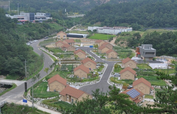 금산군귀농교육센터는 군북면 어필각로 264-18 일원에 있으며 총 2만6400㎡ 규모에 체류형 주택 16동, 기숙형 4실, 텃밭, 교육관, 공동 실습농장 등 교육·정착 지원 시설을 갖추고 있다.
