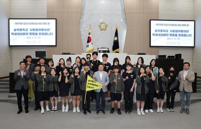 [세계로컬타임즈] 당진시의회는 14일 송악중학교 사회참여동아리 학생들이 시의회를 방문해 민주주의에 대한 이해를 높이는 뜻깊은 시간을 가졌다고 전했다.