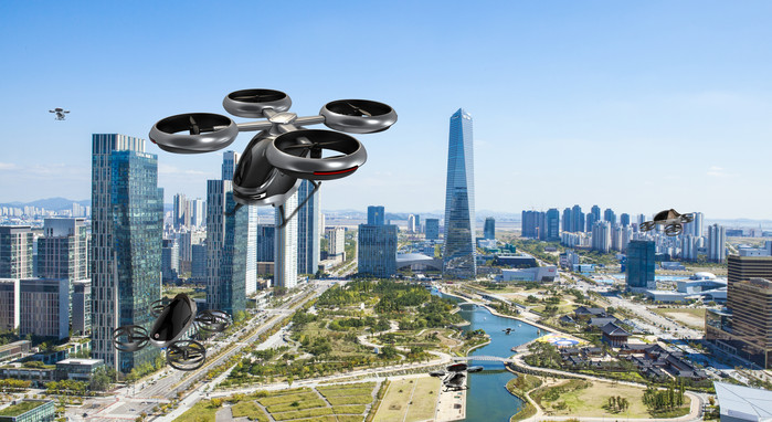| ▲ 송도를 배경으로 날아다니는 PAV들.(가상도=인천시 제공) |
