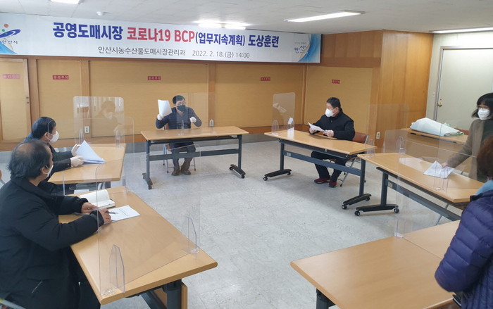 [세계로컬타임즈 김상우 기자] 안산시 농수산물도매시장은 코로나19 오미크론 변이의 급격한 확산에 따라 대규모 확진·격리자 발생상황을 대비한 ‘코로나19 업무지속계획(BCP-Business Continuity Plan)’을 수립하고 도상훈련을 실시했다고 22일 밝혔다.