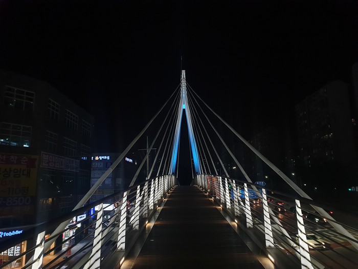 | ▲ 남동구 소래초교 육교에 야간경관조명이 설치된 모습. (사진=남동구 제공) |