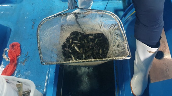 | ▲ 백령 연안해역에 방류될 조피볼락 모습. (사진=옹진군 제공) |