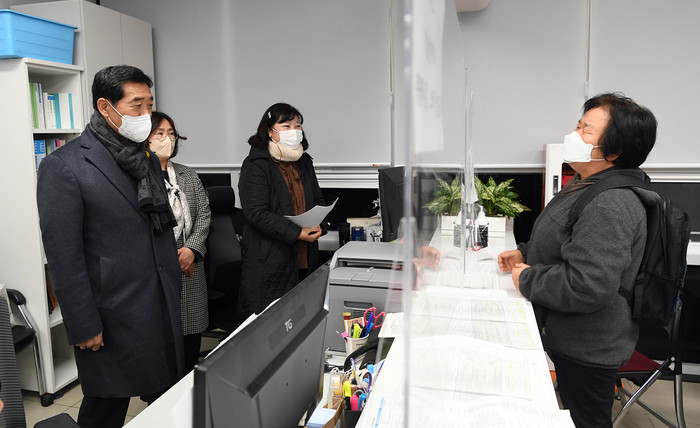| ▲ 윤화섭 안산시장이 행복복지센터에 방문해 시민 민원 해결 및 소통에 나서고 있다. (사진=안산시) |