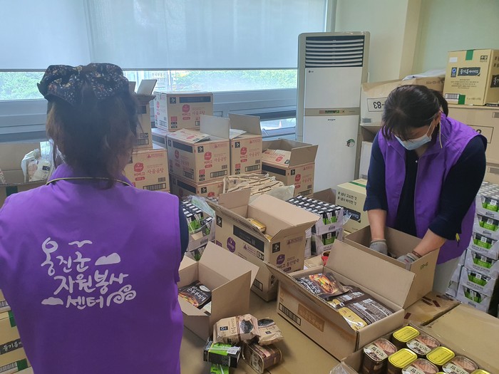 | ▲ 옹진군 자원봉사센터에서 취약계층에게 전달될 식재료 키트를 준비중 이다. (사진=옹진군 제공) |
