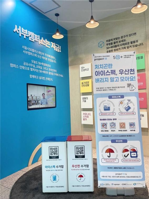 [세계로컬타임즈 이호 기자] 서울시50플러스재단은 일상에서 배출되는 아이스팩과 우산천을 모아 재사용하는 자원순환캠페인을 11월 말까지 진행한다.