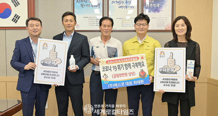 [세계로컬타임즈 조주연 기자] 교육장비 전문업체 에스넷이 충남 공주시에 1천만 원 상당의 방역물품을 기탁했다.