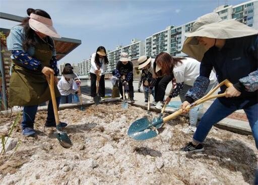 ▲ 초등학교 학부모들과 생태전환교육을 진행하고, 학교 옥상에 이끼를 직접 키우는 활동 병행한 노원도시농업네트워크 활동 모습 (사진=서울시)