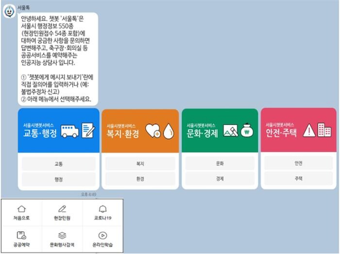 | ▲ 챗봇 시작 화면 (사진=서울시) |
