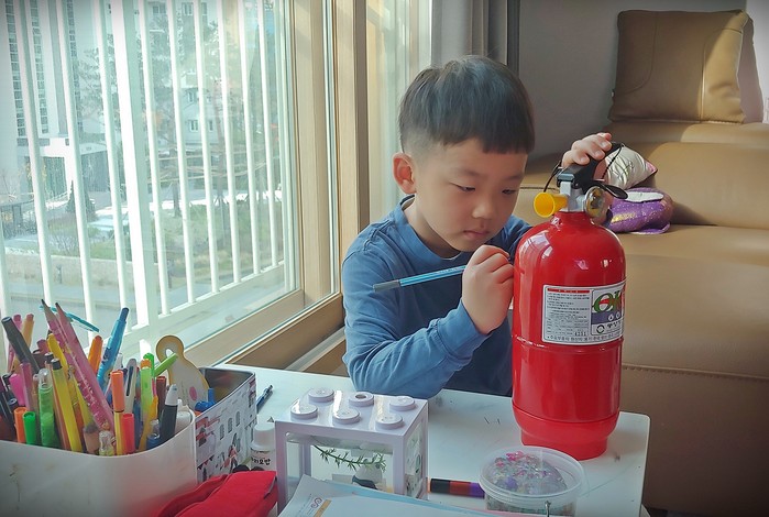 놀이를 통해 즐기면서 소방안전을 익힐 수 있도록 하는 ‘소방안전 홈트’에 참여하는 어린이집과 유치원은 74개소 약 2,000여명으로 소방서는 매주 소화기꾸미기, 피난안내도 그리기 등 안전놀이 프로그램을 제공한다.