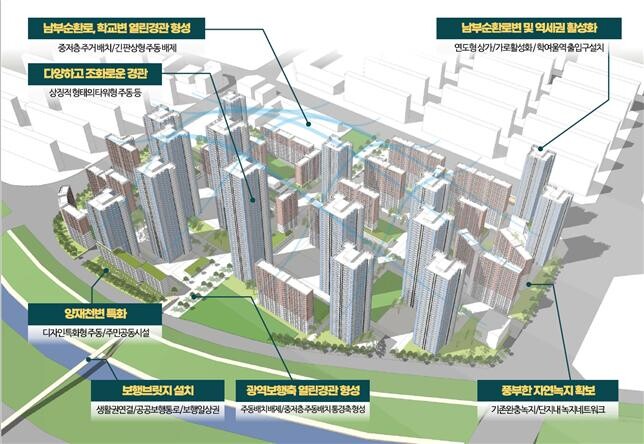 ‘35층 규제’ 완화 적용과 더불어, 공원·녹지가 풍부한 지역적 특성을 감안해 관행적인 공원 기부채납 대신 지역에 필요한 기반시설을 확보하는 등 주민 편의를 향상하는 계획안을 마련했다.