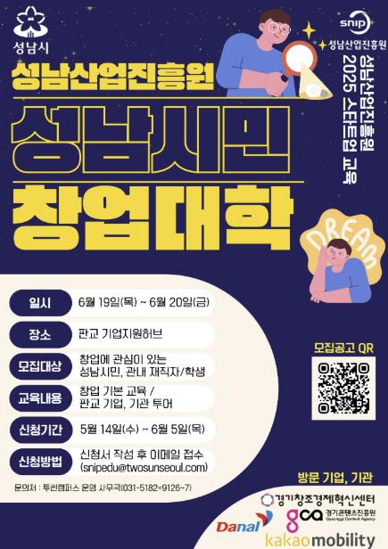 성남산업진흥원 이의준 원장은 “이번 프로그램이 시민들의 창업 이해도 제고와 실질적인 역량 강화에 기여하길 바란다”며 “앞으로도 다양한 창업 지원을 통해 시민과 함께 성장하는 창업 생태계를 만들어 나가겠다”고 말했다.