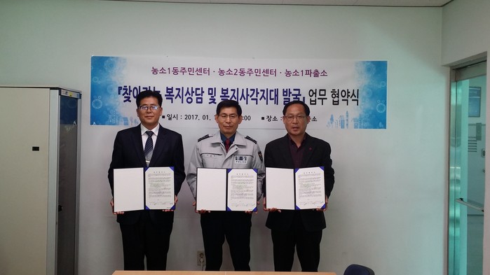 이날 협약식에서는 찾아가는 복지상담 등 맞춤형 통합서비스를 제공하는 '읍면동 복지허브화' 추진과 관련, 현장 방문이 많은 복지업무의 특성상 악성민원에 대비해 안전한 근무여건 조성과 복지사각지대 대상자 발굴 등 협력을 약속했다.