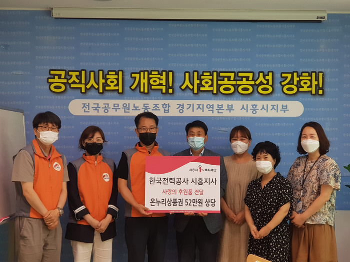 후원품은 한전 시흥지사 직원에게 지급된 상여금을 모아 마련했다.