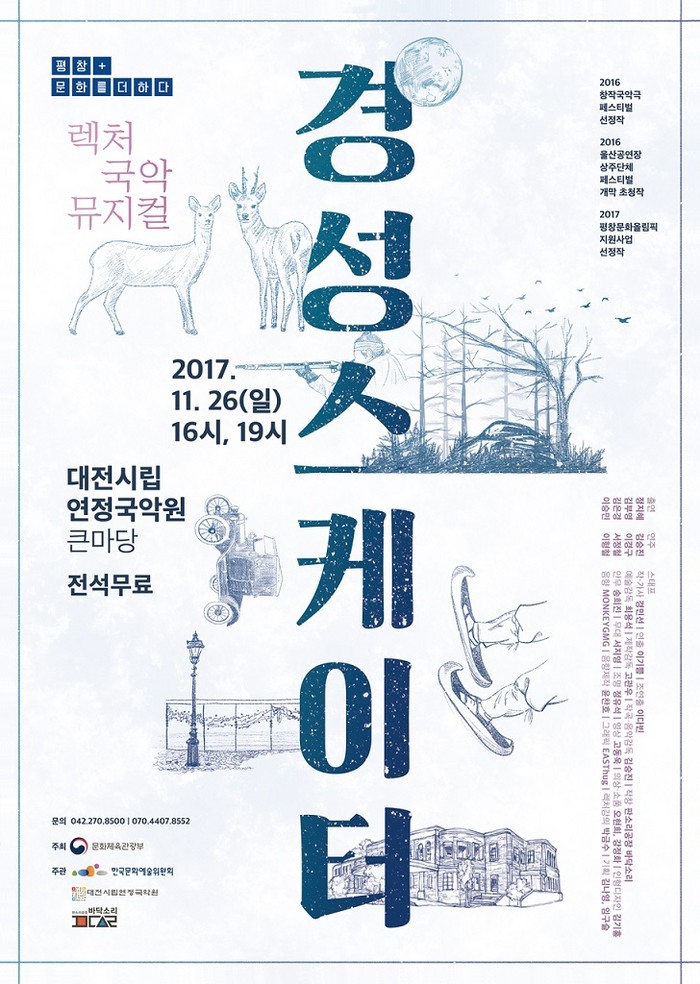 [세계로컬신문 오영균 기자]올해 평창문화올림픽 지원사업 선정작인 렉처 국악 뮤지컬, ‘경성스케이터’가 오는 26일 대전시립연정국악원 무대 오른다.