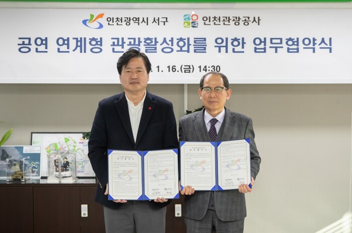 유지상 인천관광공사 사장은 “인천 관광 활성화를 위해 군·구와의 협력이 중요하다”라며, “이번 협약을 계기로 서구의 공연·문화 자원이 관광 거점으로 자리 잡을 수 있도록 협력하겠다”라고 전했다.