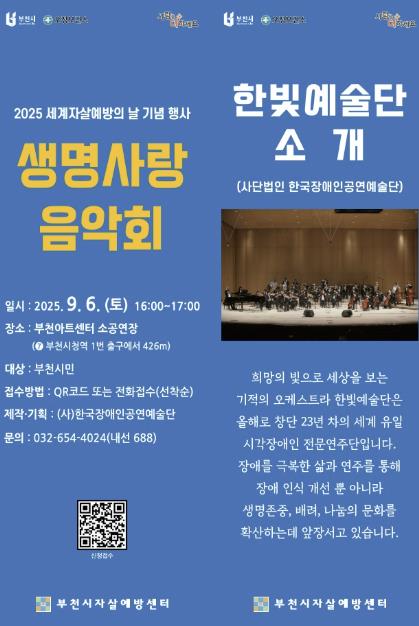 음악회는 선착순 230명으로, 부천 시민이라면 누구나 큐알(QR)코드 또는 전화접수를 통해 무료로 신청할 수 있다.