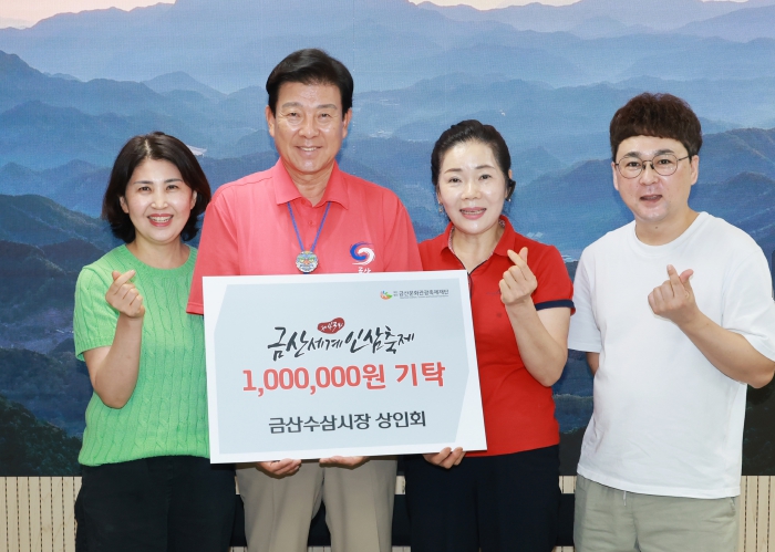 박범인 금산군수는 “축제 성공을 위해 힘을 보태 주신 금산수삼시장상인회의 뜻깊은 기부에 감사드린다”며 “국내·외 관람객이 만족할 수 있는 세계적인 축제를 선보일 수 있도록 최선을 다하겠다”고 말했다.