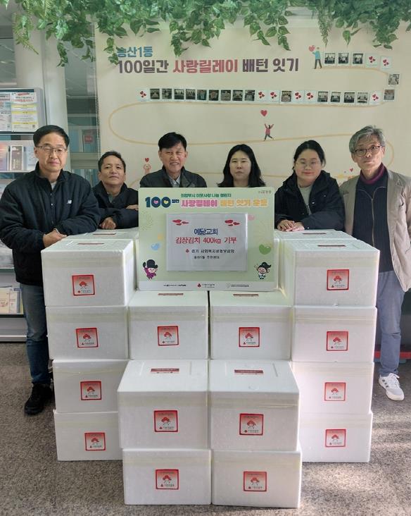 전선녀 동장은 “매년 잊지 않고 따뜻한 마음을 실천해 주시는 예닮교회 성도분들께 감사드린다”며 “기탁된 김치는 관내 저소득 가구에 소중히 전달하겠다”고 말했다.