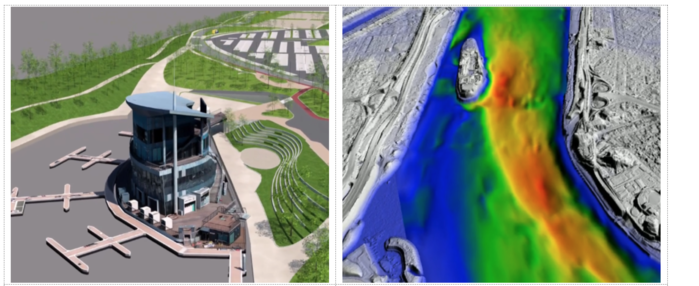 | ▲ 한강정밀모델 (사진 왼쪽)과 한강수심모델링 (사진=서울시) |