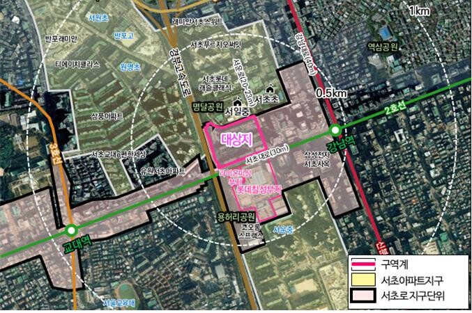 경부고속도로와 서초대로(테헤란로) 교차부에 위치한 주거단지로, 강남도심의 업무·상업 중심 기능을 지원하는 ‘도심형 복합주거단지’로 거듭날 전망이다.