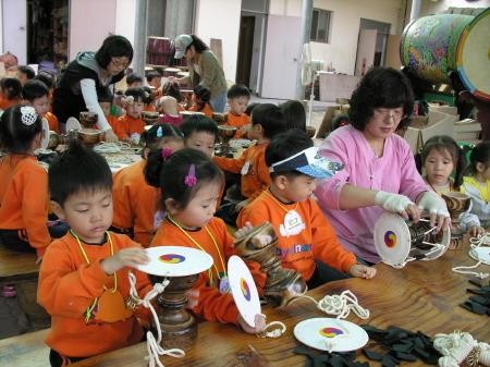 | ▲ 영동국악체험촌을 찾은 아이들이 국악기 만들기 체험을 하고 있는 모습. <사진제공=영동군청> |