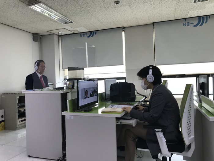 | ▲ 적극 행정 직무교육이 온라인 영상회의실에서 비대면으로 이뤄지고 있다. (사진=남동구 제공) |