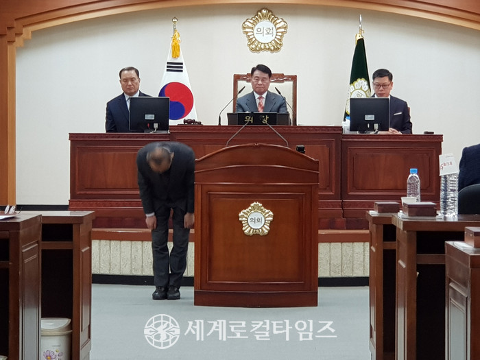 | ▲박준배 김제시장은 21일 김제시의회 시정연설을 마치고 인사를 하고 있다. (사진=조주연 기자) |