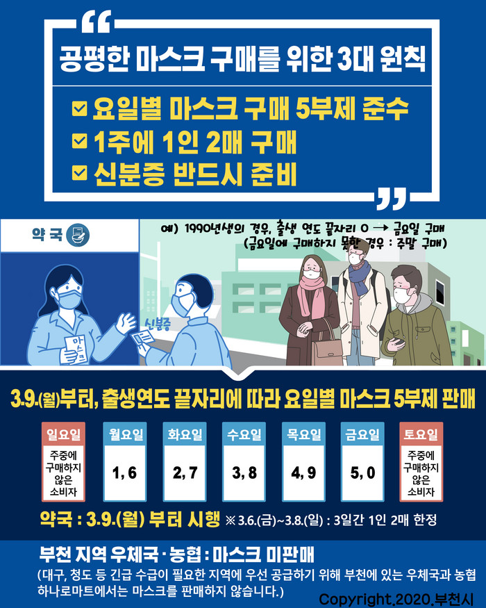 | ▲ 부천시 마스크5부제 알림 카드. (사진=부천시 제공) |