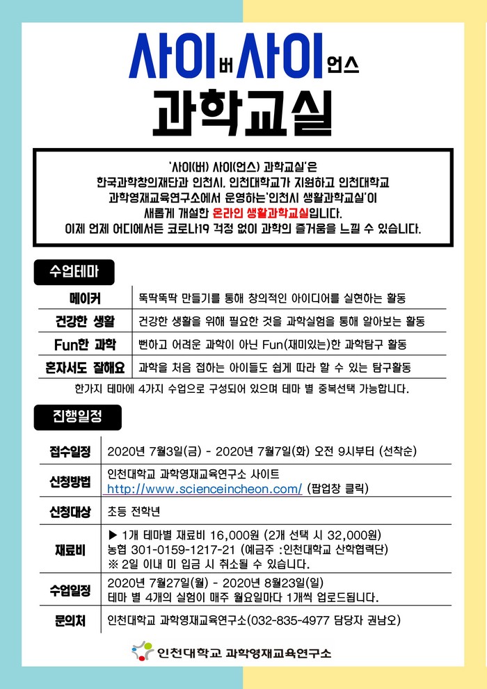 | ▲ '사이버 사이이언스 과학교실' 포스터. (사진=인천대 제공) |