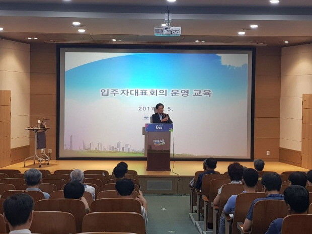 | ▲ 민천식 포천부시장이 지난 5일 시립중앙도서관 세미나실에서 공동주택 입주자대표 50여명이 참석한 가운데 공동주택 입주자대표회의 구성원 교육을 실시했다. <사진제공=포천시청> |