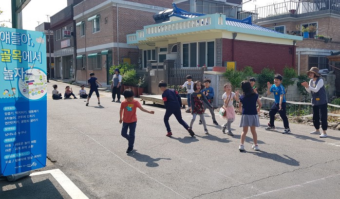 | ▲ 2019년 골목놀이 프로젝트에서 인천 동구 아동들이 뛰어놀고 있다. (사진=인천 동구 제공) |