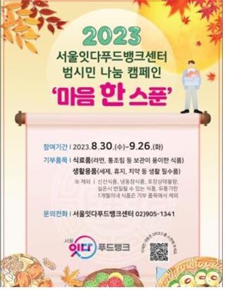 [세계로컬타임즈 이효진 기자] 서울시는 추석 명절을 앞두고 취약계층을 위한 식품과 생활용품을 모으는 추석맞이 범시민 식품나눔 캠페인 ‘마음 한 스푼’을 26일까지 진행한다.