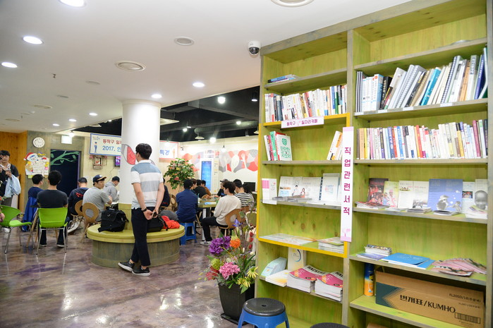 사진촬영이 진행되는 노량진 일자리카페는 지난해 서울시가 발표한 청년 일자리 지원정책의 결과물로 최신 일자리 정보와 다양한 취업 특강 제공, 소그룹 멘토링 교육은 물론 스터디룸 대여, 이력서ㆍ자소서 클리닉까지 취업에 대한 모든 것을 준비할 수 있는 곳이다.