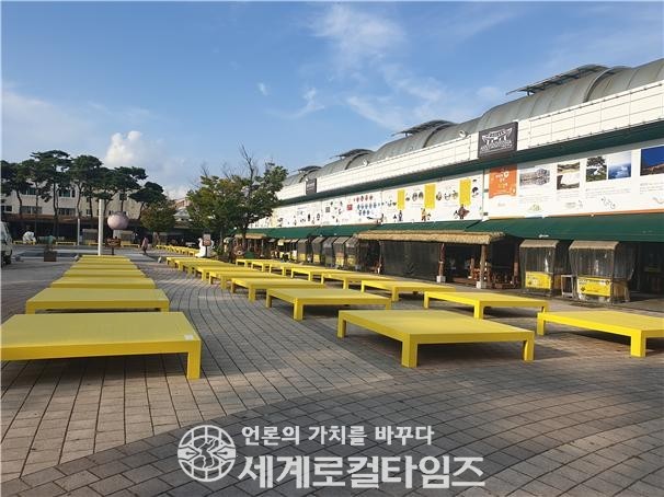 [세계로컬타임즈 조주연 기자] 충남 공주 산성시장 문화공원에 여행자 평상이 등장했다.
