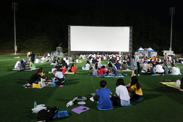 | ▲ 지난 7일 한여름방의 영화 태백 쿨시네마 개막 첫날 고원1구장을 찾은 관람객들이 즐기고 있는 모습.<사진제공=태백시청> |