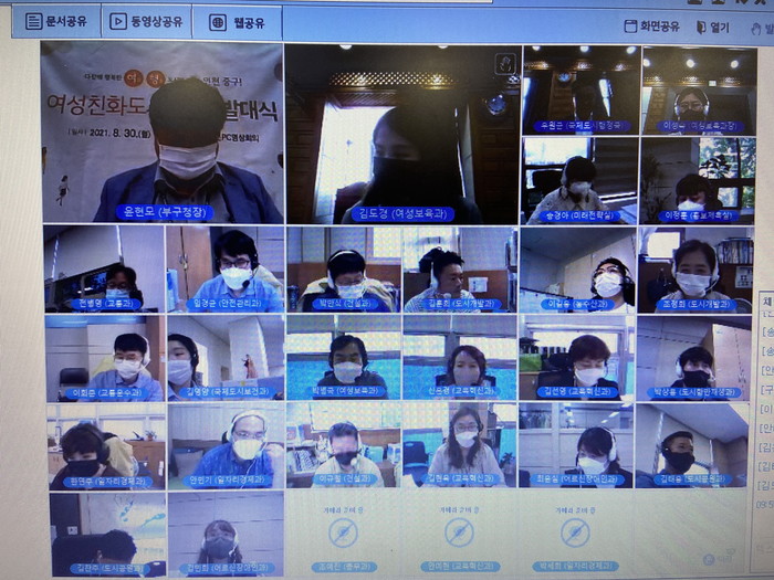 | ▲ 인천 중구가 30일 개최한 여성친화도시 조성 T/F팀 발대식 행사에서 부구청장 주재로 온나라 PC 영상회의를 진행하고 있다. (사진=인천 중구) |