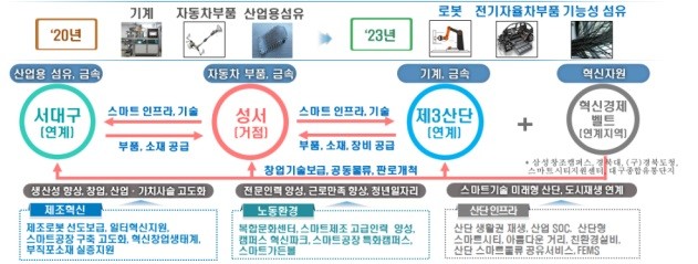 성서산업단지를 ‘거점산단’으로 하고, 제3산단과 서대구산단을 ‘연계산단’으로 하며, 구 경북도청·삼성창조캠퍼스·경북대·종합유통단지 및 EXCO를 ‘연계지역’으로 하는'대구 산업단지 대개조 계획' 수립을 완료하고 본격적인 사업 추진에 나설 계획이다.