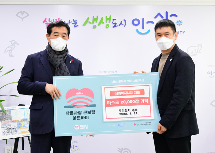 [세계로컬타임즈 김상우 기자] 안산시는 21일 주식회사 쎄텍(대표 김종현)으로부터 관내 다문화가정 및 청소년복지시설을 위한 마스크 2만장을 기탁 받았다.