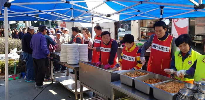 [세계로컬신문 남재일 조사위원] 세계일보 조사위원 대구북구협의회(회장 남재일)가 (사)사랑해밥차와 함께 지난 1일 대구 신암공원에서 300여 명의 어르신들에게 음식준비, 조리 및 배식 봉사를 하고 있다.