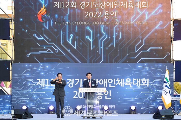 | ▲ 이상일 용인시장이 제12회 경기도장애인체육대회 2022 용인 개회식에서 인사말을 하고 있다. (사진=용인시) |