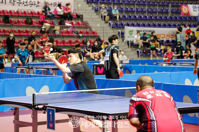 | ▲ 제68회 경기도체육대회 2022 용인 탁구 종목에서 김정훈 선수가 열전을 펼치고 있다. (사진=용인시) |