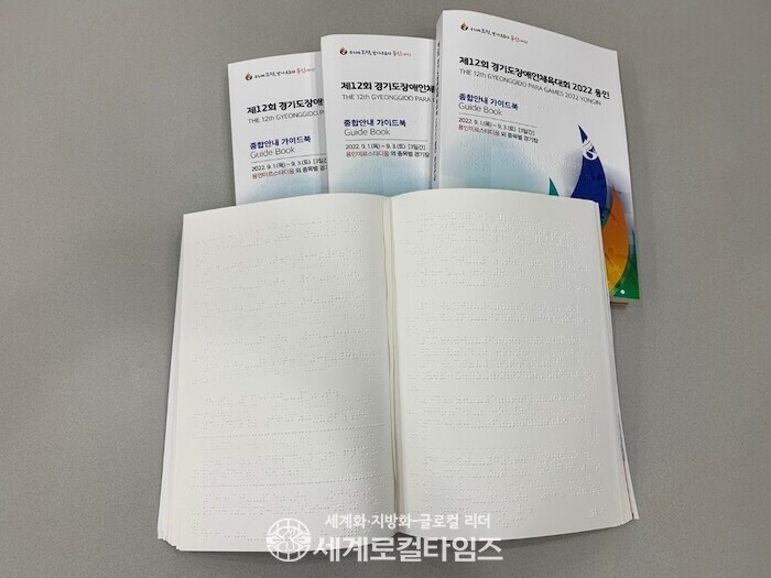 | ▲ 제12회 경기도장애인체육대회 2022 용인 종합안내서를 점자책으로 발간했다. (사진=용인시) |