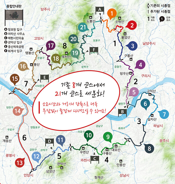 ‘서울둘레길’은 올해 초 코스를 기존 8개에서 21개로 세분화, 코스당 평균 길이를 20km에서 8km로 줄였다.