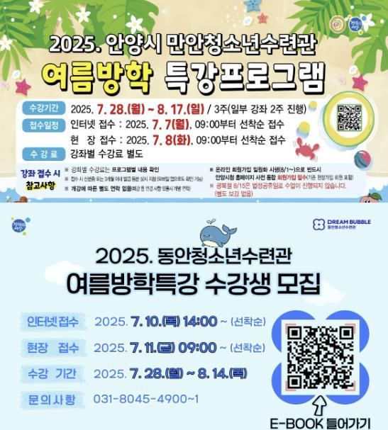 동안청소년수련관도 오는 7월 10일부터 여름방학특강 수강생을 모집한다.
