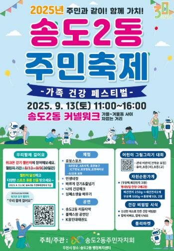 [세계로컬타임즈] 연수구 송도2동 주민자치회가 오는 13일 송도 커넬워크 겨울동에서 가을동 사이 차 없는 거리에서 '2025 송도2동 주민축제'를 개최한다.