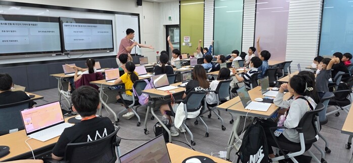 학생들은 코딩과 애니메이션 기능을 활용해 가상의 친환경 축사를 제작하고, 이를 바탕으로 그림책을 만들어 발표하며 창의적 문제 해결 능력을 기르는 시간을 가졌다.