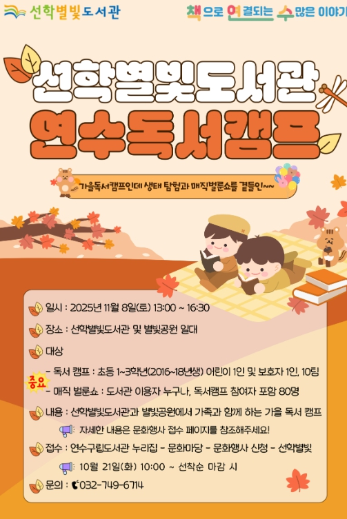 선학별빛도서관 관계자는 “이번 문화 행사를 통해 주민들이 도서관과 자연환경에 친숙해지고 가정 내 올바른 독서 문화를 형성하는 계기가 되길 바란다.”라고 말했다.