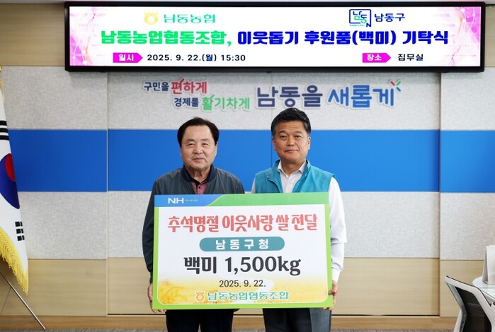 남동농업협동조합 한윤우 조합장은 “민족 최대의 명절 추석을 맞아 백미를 기탁하게 됐으며, 주변의 이웃들이 풍성한 한가위를 지내길 바란다”라고 말했다.